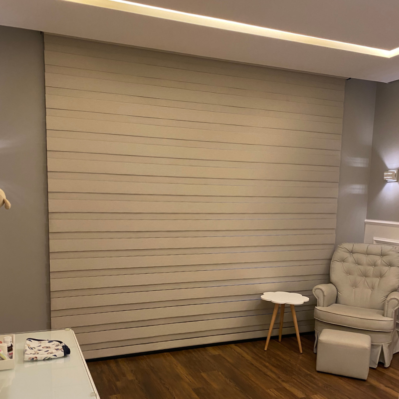 Desenvolvida para projetos contemporâneos, a cortina Double Vision proporciona ajuste preciso da entrada de luz aliado a uma estética funcional. Confeccionada nos tecidos translúcido, screen e semi blackout, apresenta diversas opções de cores. Pode ser acionada manualmente ou por motorização, adaptando-se a ambientes residenciais e corporativos. O tecido screen conta com proteção UV, ação antimofo, antiácaro e retardante de chamas.